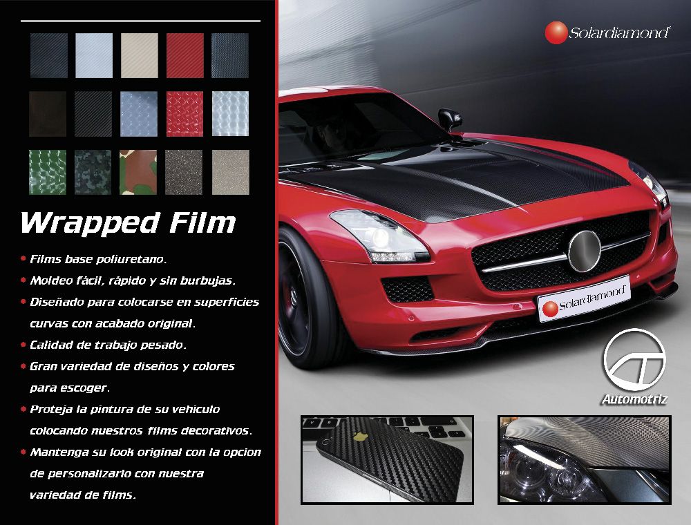 Viniles decorativos para autos con base poliuretano, alta capacidad de moldeo y de resistencia a los rayos UV; diseñados para ser instalados en superficies curvas y planas, tomando la forma original inmediatamente. Sin necesidad de hacer empates, brindando un acabado totalmente original y nuevo.